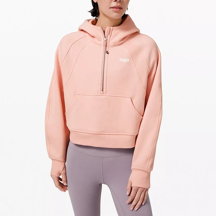 Style: Half-zip pullover hoodie with hood